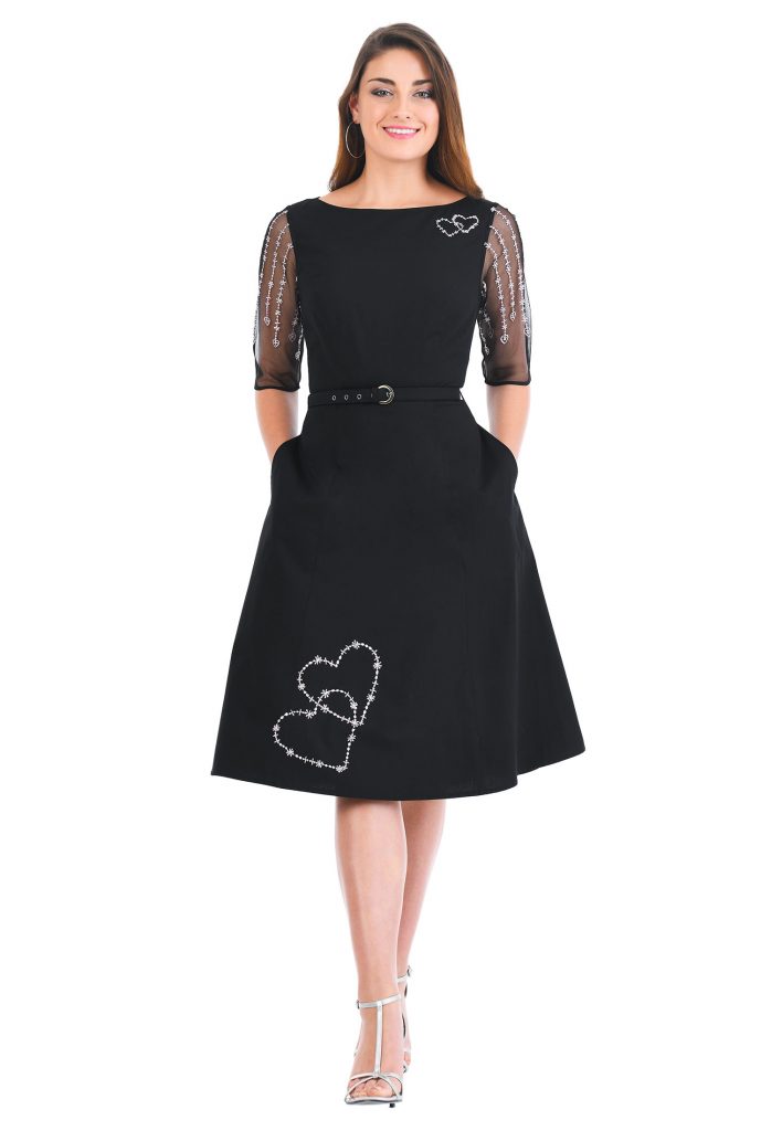 Tulle Sleeve Heart Embellished Poplin Belt Dress – image from eShakti